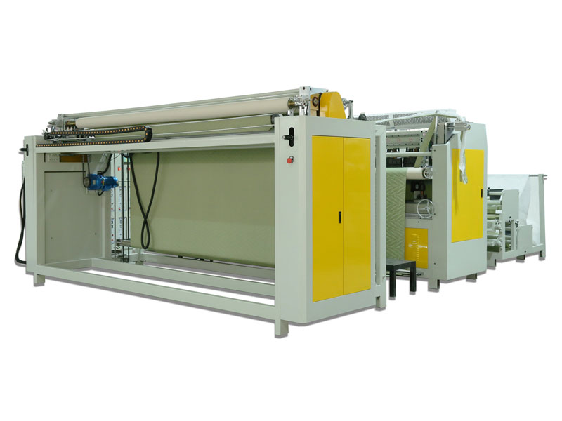 復卷裝置可配置單/雙滾筒(同步勻速復卷)或單根氣脹軸(磁粉離合器張力控制),收卷面料松緊可調。